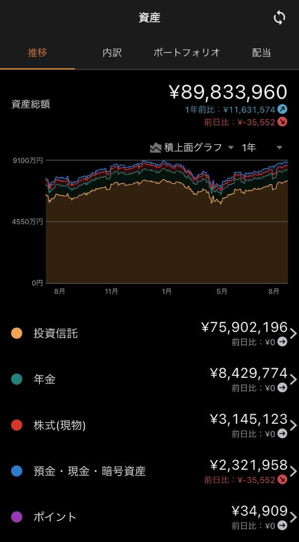 - 投資信託:75,902,196円(インデックス投資のみ。その大部分がS&P500連動型)