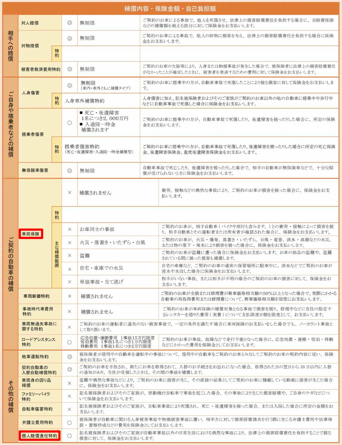 また、「個人賠償責任特約」や「弁護士費用特約」など、法的トラブルや自転車事故などの対策にも重点を置いている。これは保険の原則に忠実な設計であり、蓄えでカバーできる損失には保険をかけず、人生を左右するような損失に備える姿勢である。