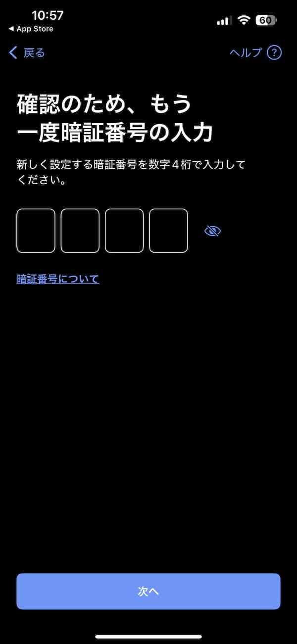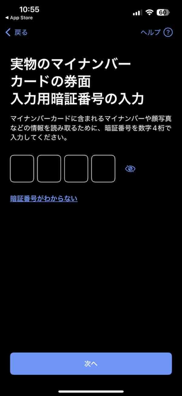 忘れないように実物のマイナンバーカードと同じ暗証番号に設定した。