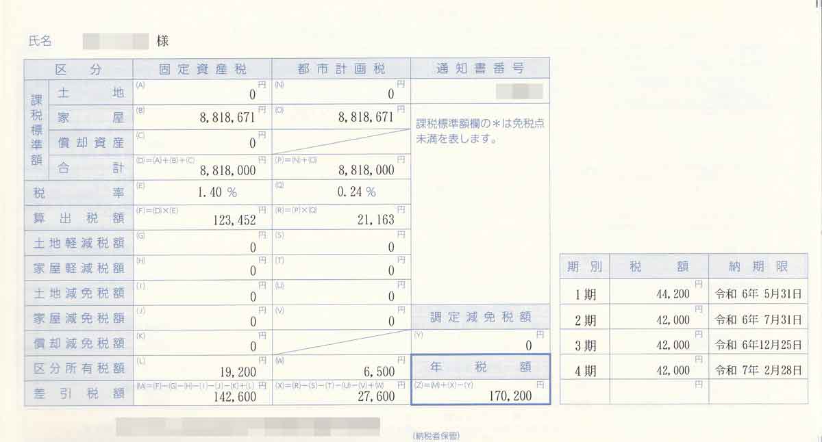 実際の固定資産税・都市計画税